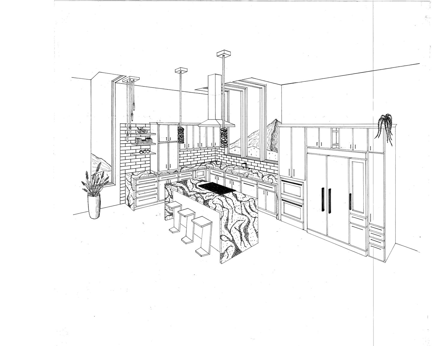 This is a hand drafted kitchen set in a fictional location. The goal of this assignment was to capture the depth and layout of a space while offering ques to the type of design through detail and illustration.