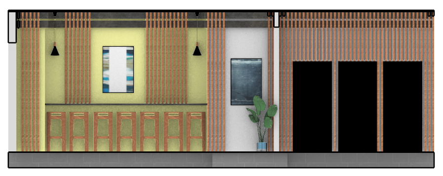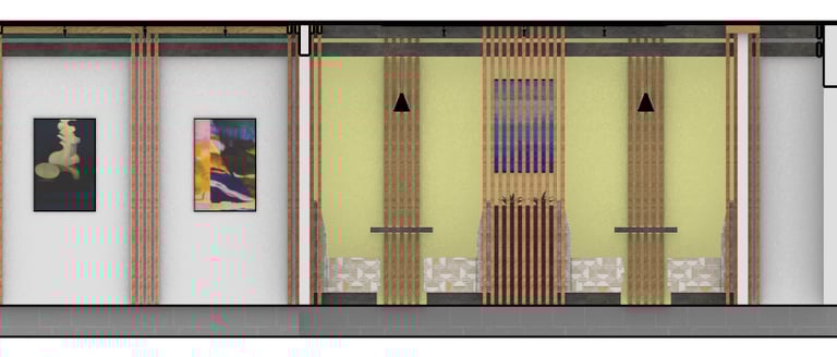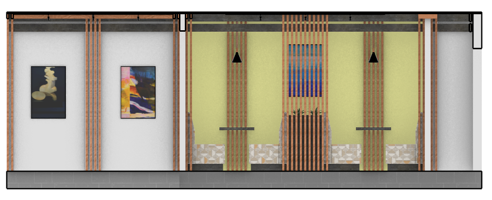 A reimagined hallway design for the Steelcase Studio. Centered around providing spaces for students to relax, or work in an individual setting, as well as open wall space to be utilized as a galley for our work.