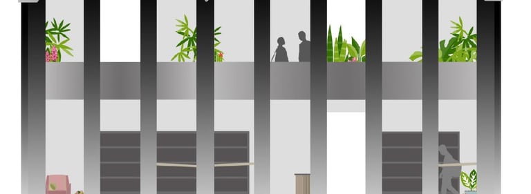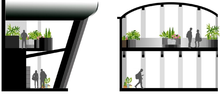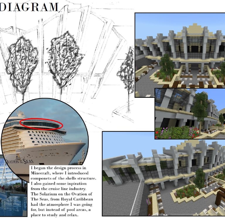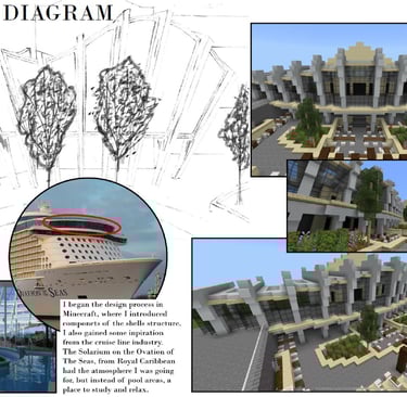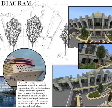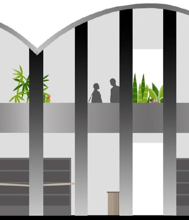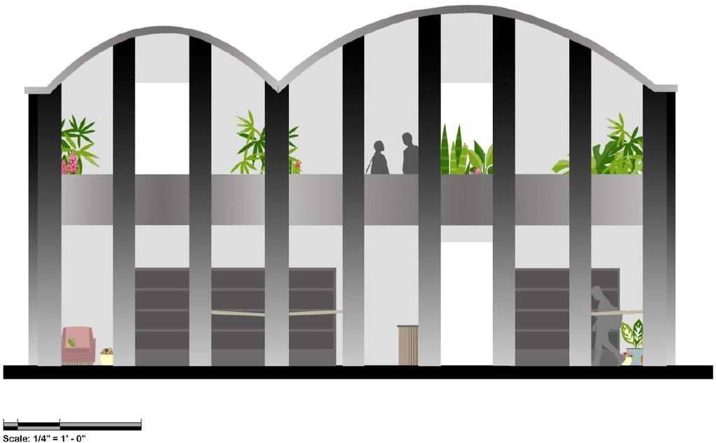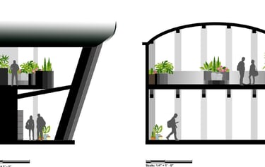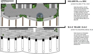 The Rec Center on the Mizzou campus is a hot spot for students and the community. Our task was to take the existing outdoor pool area and turn it into a multi-purpose area for students and the community to utilize. My idea involved an indoor-outdoor structure where students could peacefully work upstairs and the lower level would act as a trade/thrift store for the surrounding community and students living on campus. Students would have better access to used and new/unused item, books, and supplies for dorm living. Opportunities for human connection and exposure to the environment play a key role in this design.